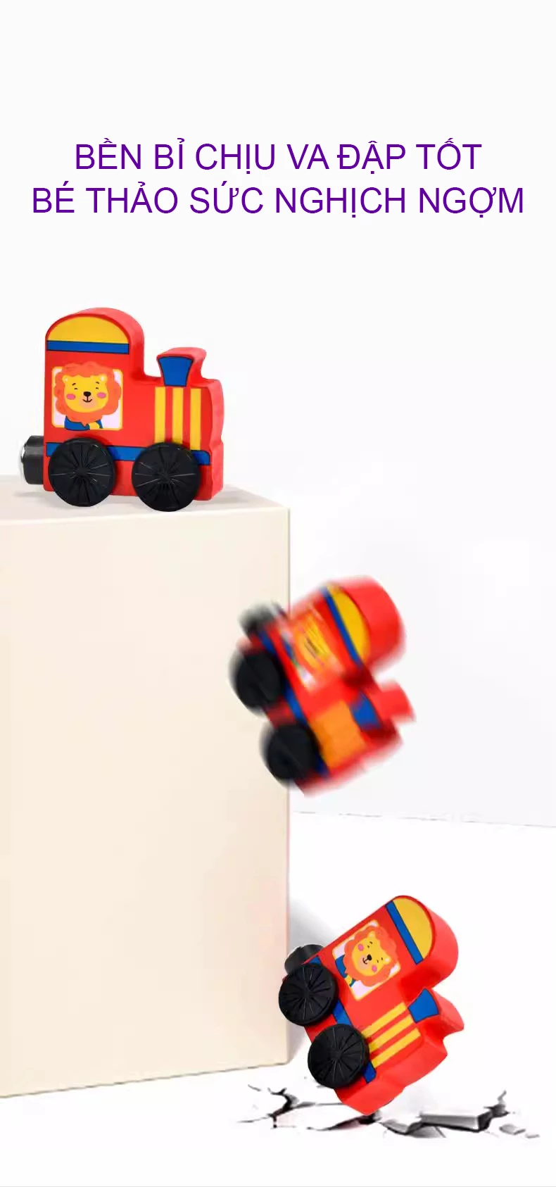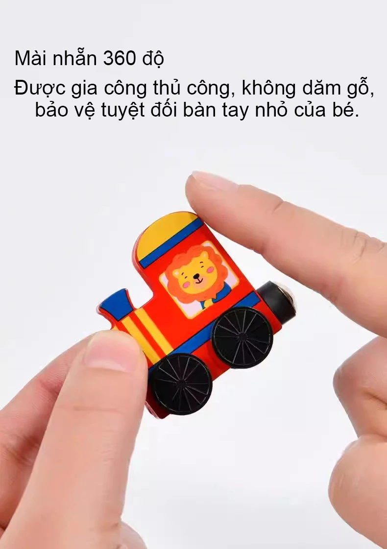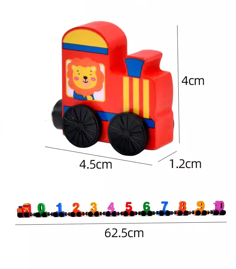 Kích thước tiêu chuẩn: Mỗi toa tàu cao khoảng 4cm, dài 4.5cm, phù hợp với tầm tay trẻ nhỏ. Tổng chiều dài đoàn tàu lên đến 62.5cm.