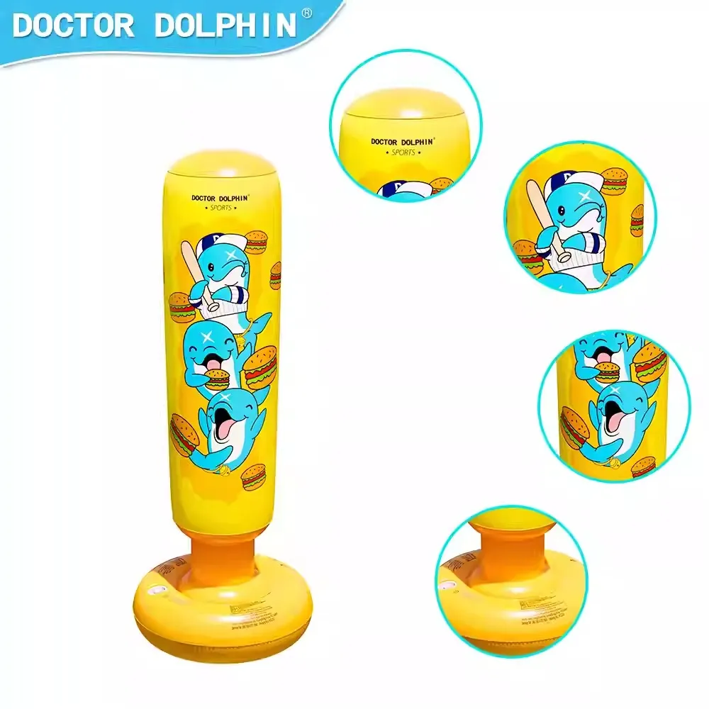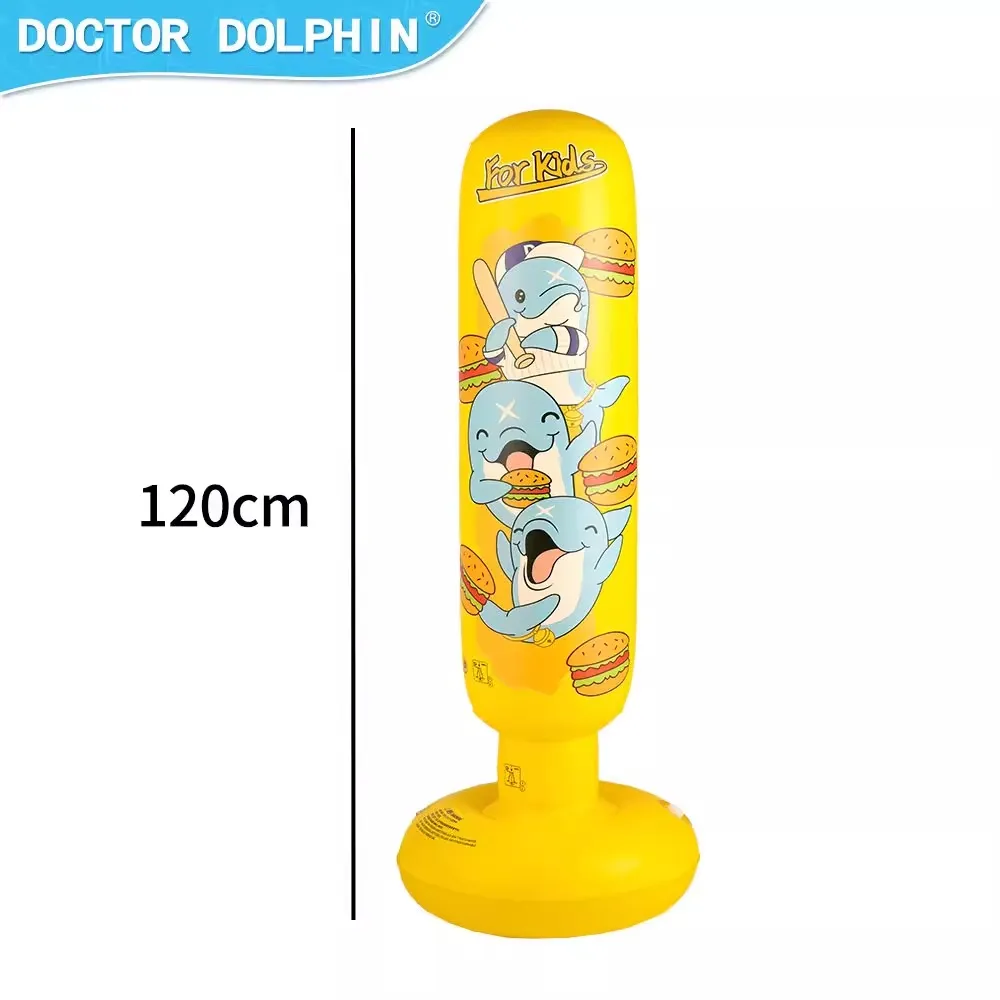 Trụ đấm bốc bơm hơi Doctor Dolphin 120cm là sản phẩm vận động hoàn hảo cho bé từ 3-10 tuổi. Với thiết kế hình cá heo vàng bắt mắt và cơ chế lật đật tự cân bằng, sản phẩm giúp bé rèn luyện phản xạ, giải tỏa năng lượng và phát triển thể chất toàn diện. Chất liệu nhựa PVC cao cấp, dày dặn, đảm bảo bền bỉ và an toàn tuyệt đối khi va chạm mạnh.